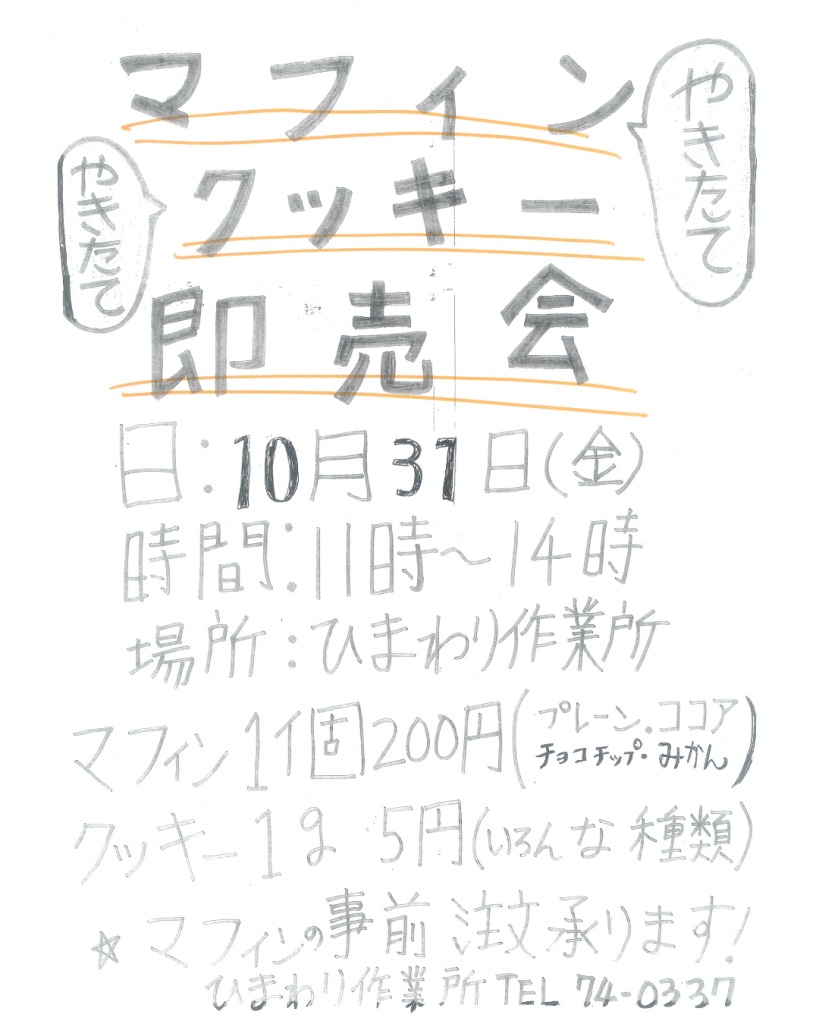 ひまわり作業所のメンバーが美味しいクッキーとマフィンを心を込めて作りますので、皆さま、ぜひお越しください!